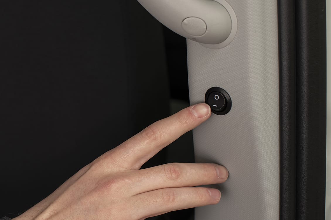 Dank des Zwei-Tasten-Bedienfelds lassen sich Öffnen und Schließen des Lifts einfach und schnell durchführen, wodurch das Ein- und Aussteigen von Rollstuhlfahrern erleichtert wird.