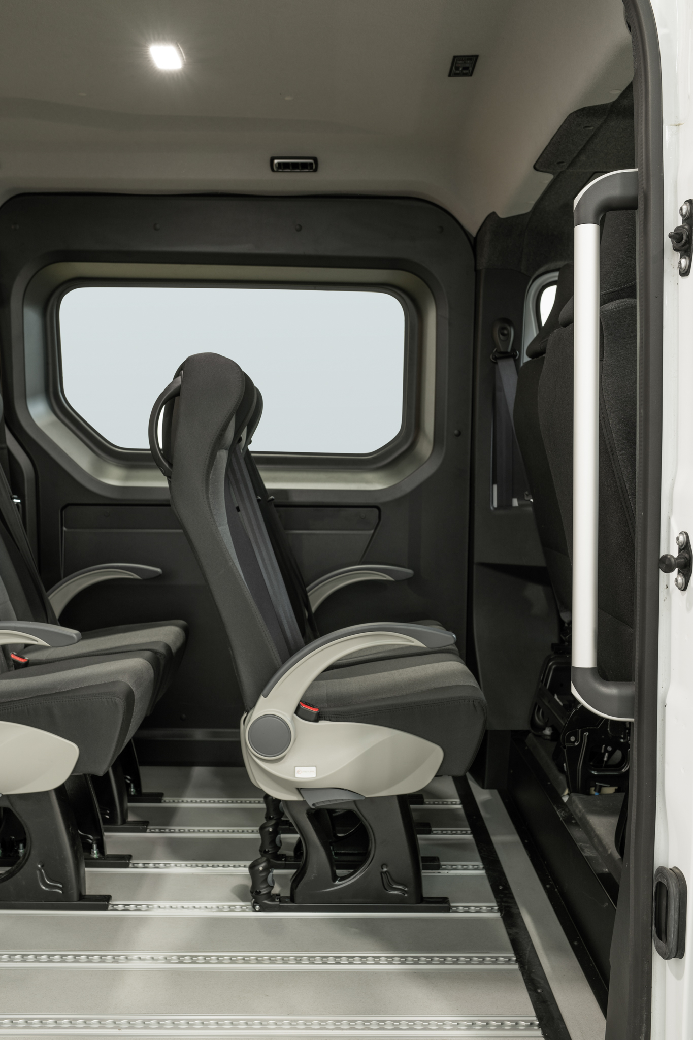 Einzelne herausnehmbare Sitze auf Bodenschienen mit 3-Punkt-Sicherheitsgurten