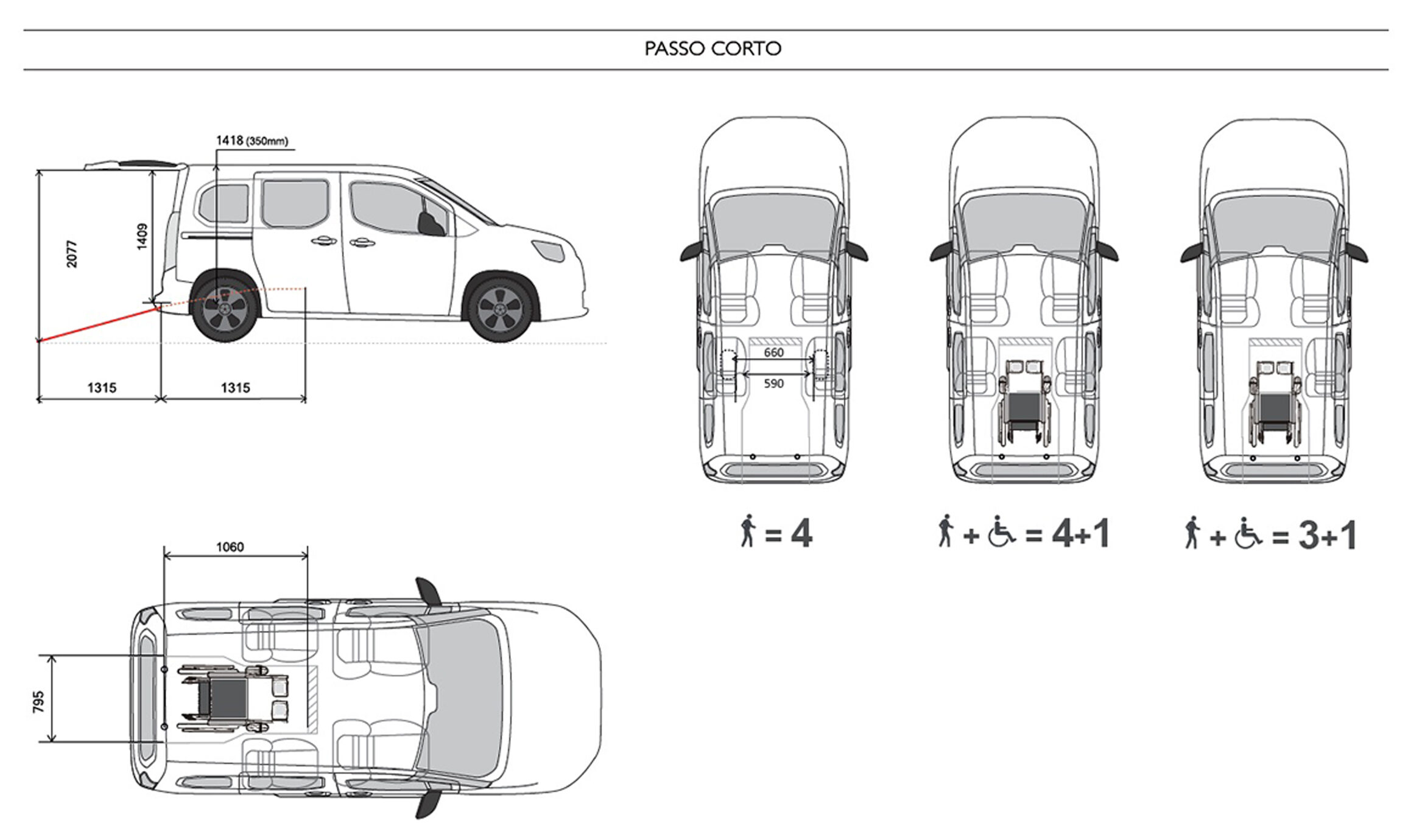 Fiat Doblò F-Style One permet de transporter une personne en fauteuil roulant et jusqu’à cinq passagers, en configuration 4+1 ou 5+1. L’équipement comprend plancher Hi-Tech, lumières LED intégrées et revêtements intérieurs en ABS automobile, offrant des finitions exclusives en ligne avec l’esthétique du véhicule.