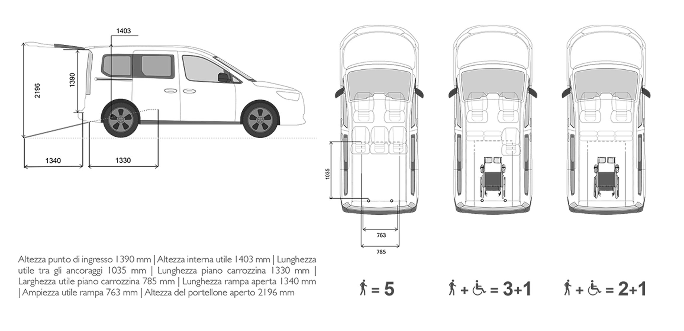 L’ouverture et la fermeture manuelles de la rampe d’accès sont faciles et rapides. Quand la personne en fauteuil roulant n’est pas à bord, la rampe se replie internement pour recréer le plan d’appui d’origine, utile au positionnement d’objets et de bagages.