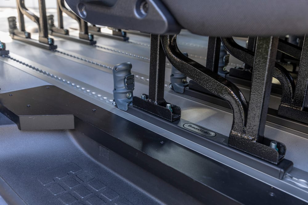 I veicoli sono allestiti con sedili singoli su guide, rivestimenti in ABS e finiture di livello automobilistico, pensati per garantire durata e flessibilità di configurazione in base all’utilizzo.