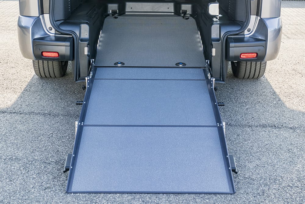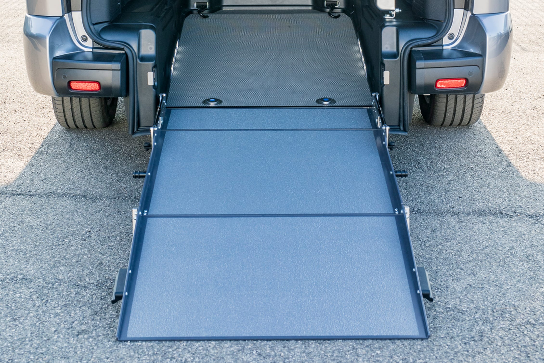 Apertura e chiusura manuale della rampa di accesso sono facili e veloci. Quando la persona in carrozzina non è a bordo, la rampa si ripiega internamente per ricreare il piano di appoggio originario, utile per il posizionamento di oggetti o bagagli.