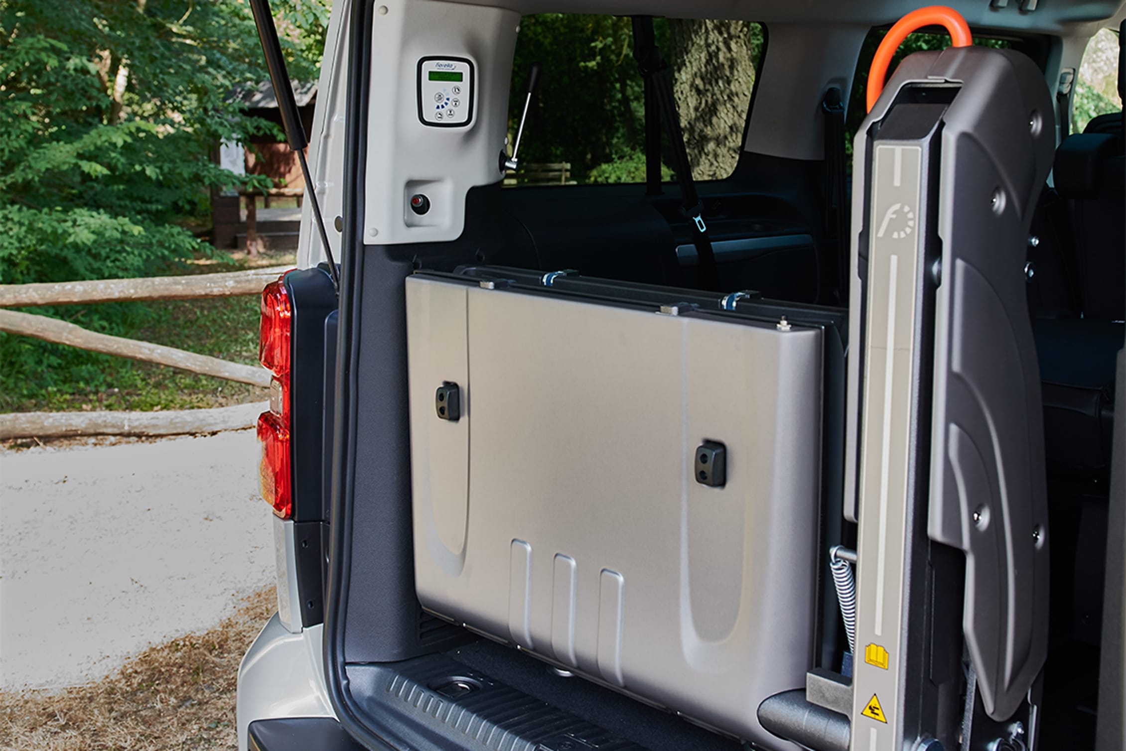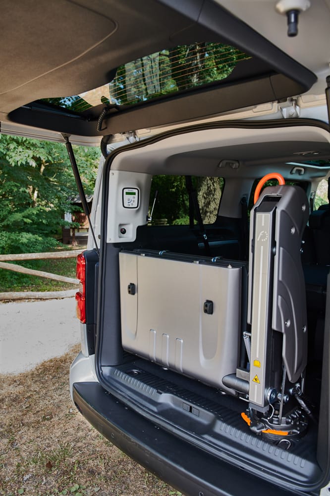 Citroën Spacetourer con Sollevatore Fiorella abbina compattezza esterna e ampiezza interna. La persona in carrozzina entra dal retro in totale sicurezza, viaggiando accanto agli altri passeggeri con il massimo del comfort.