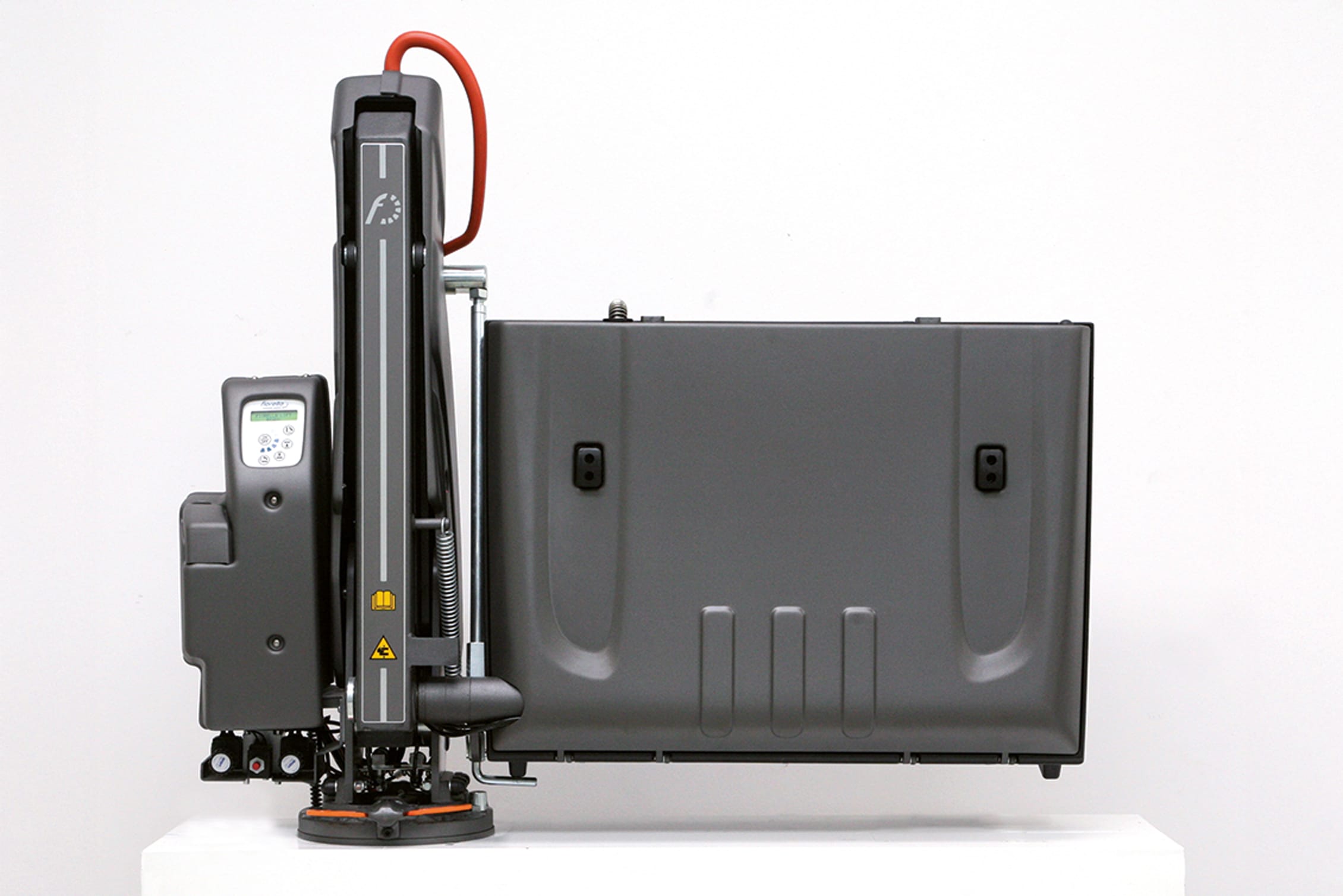 Il sollevatore è dotato di un telecomando wireless e di una pulsantiera a filo, offrendo un funzionamento intuitivo. Inoltre, integra sistemi di sicurezza unici, come il sistema antischiacciamento sul braccio principale e il sistema anti-ribaltamento.