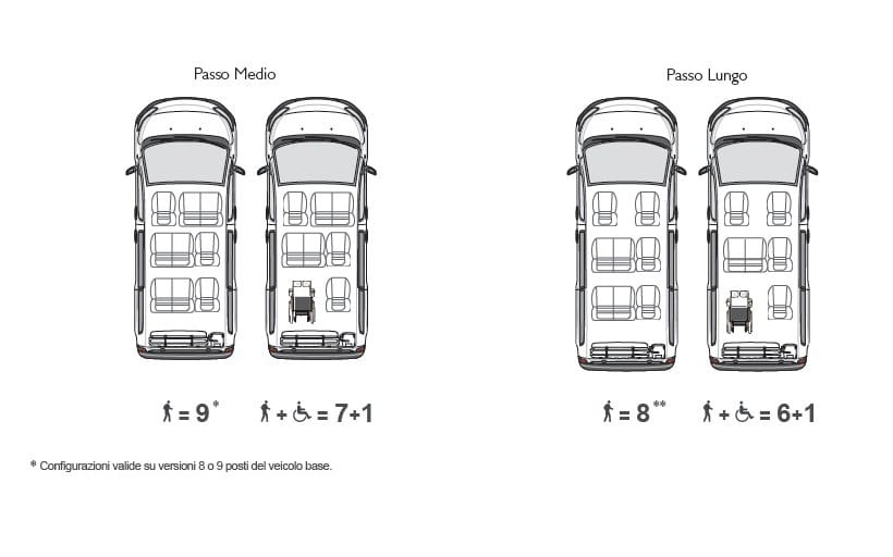 Configurazioni: 6+1 / 8-9 posti totali