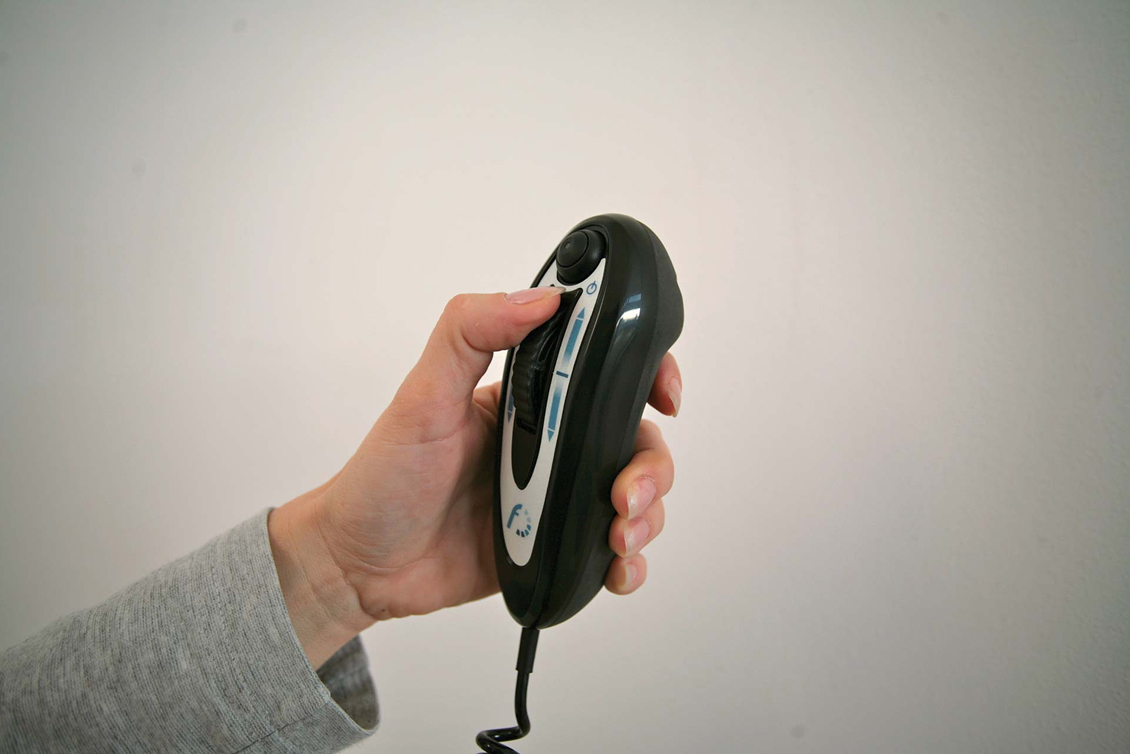 Il nostro joystick ergonomico, collegato tramite cavo a spirale, è dotato di una rotellina di controllo con auto-ritorno alla posizione neutra. Il sistema certificato permette di regolare con precisione la velocità di traino e l’accelerazione.