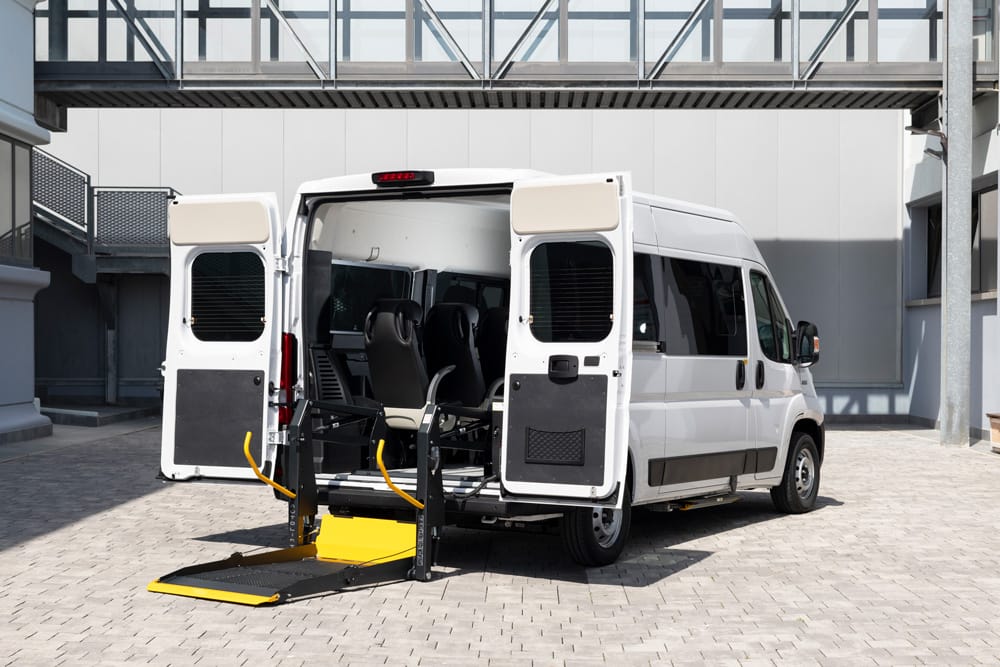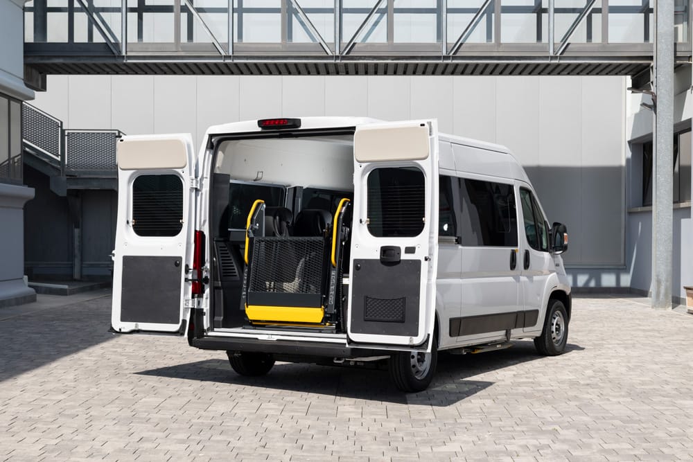 Fiat Ducato allestito con sollevatore a doppio braccio è perfetto per il trasporto di persone con disabilità. Configurabile fino a 3 passeggeri anteriori con 3 o 4 carrozzine nella parte posteriore. È disponibile con motorizzazione Diesel o Elettrica, una risposta efficiente a tutte le esigenze di mobilità con attenzione alla sostenibilità.