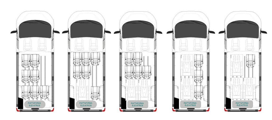 Configurazioni: 3+3 / 5+2 / 7+2 / 8+1 / 9 posti totali