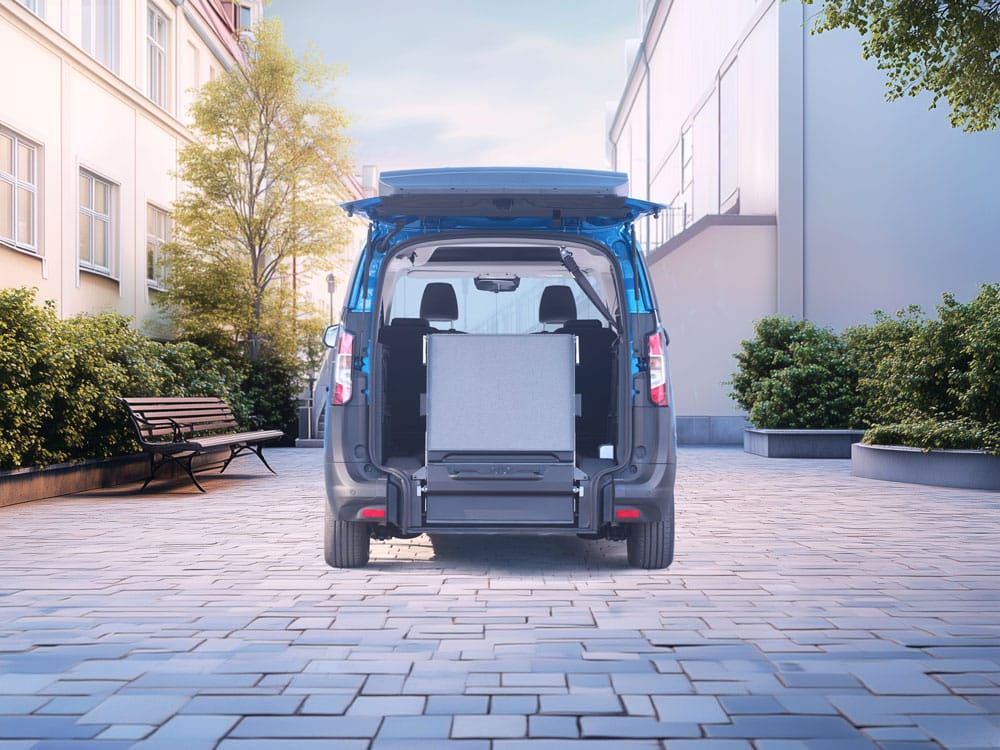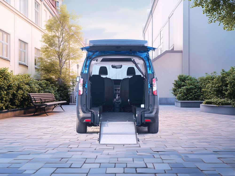 Scopri di più sugli allestimenti disponibili su Ford Courier per trasporto persone con disabilità.