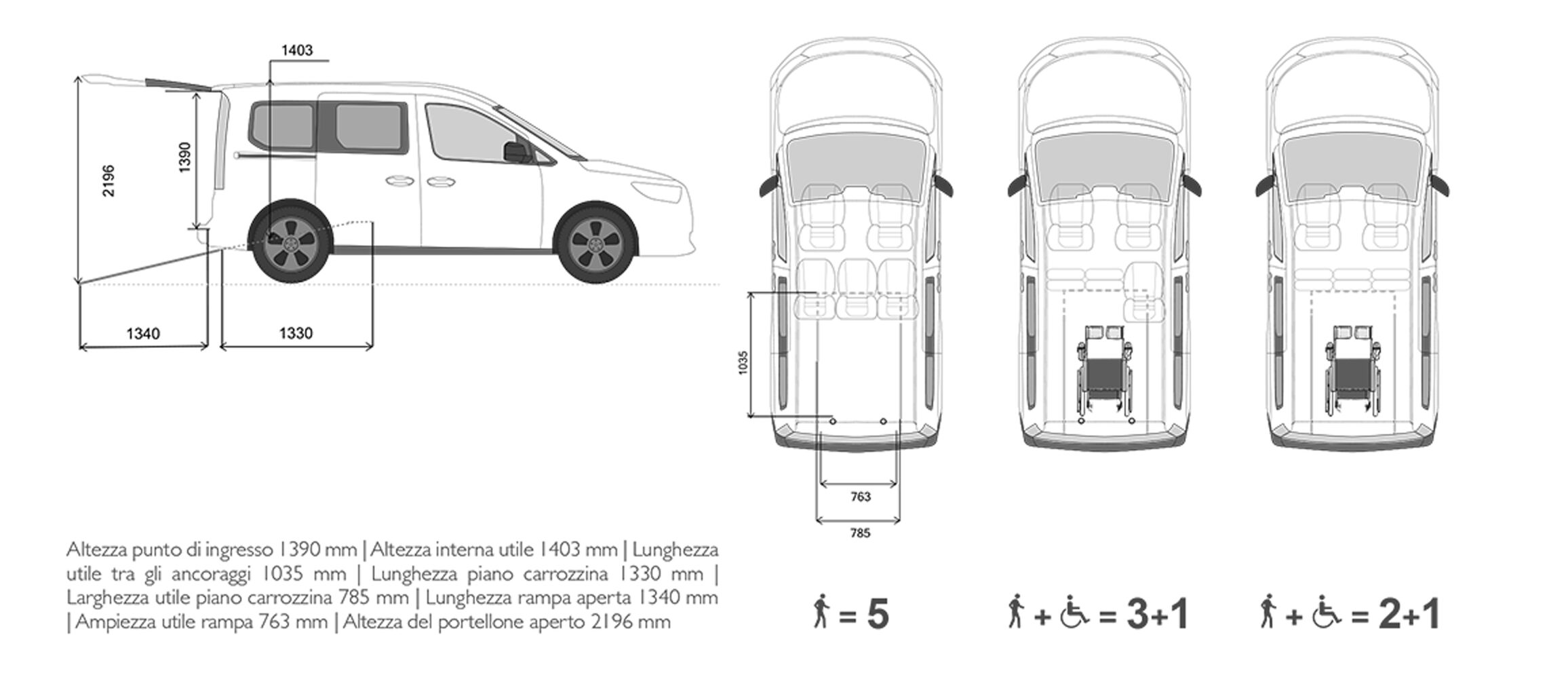 Ford Tourneo Connect F-Style si caratterizza per l’eleganza delle finiture, la funzionalità degli equipaggiamenti e per l’assoluta sicurezza dell’allestimento. L’accesso al veicolo è facilitato dalla pratica rampa manuale, e la persona in sedia a rotelle può prendere posto all’interno dell’auto accanto ai passeggeri posteriori.
