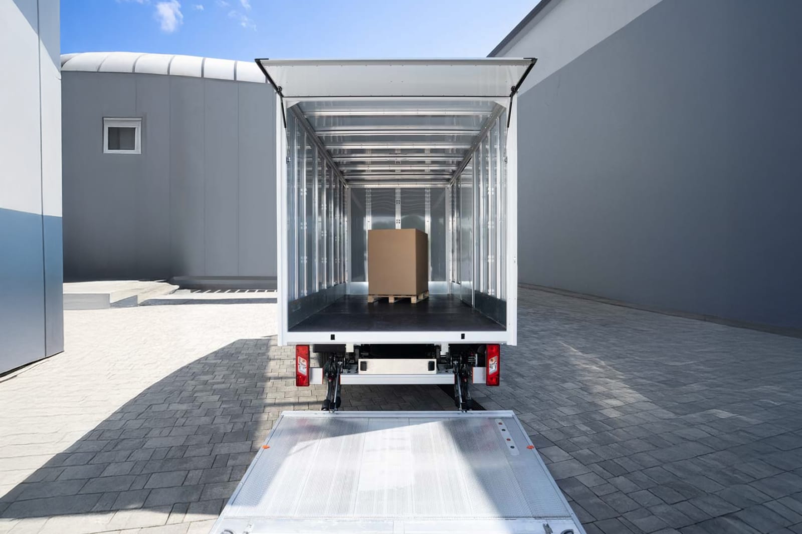La porta posteriore a due battenti si apre a 270°, permettendo carichi e scarichi agili anche in spazi ristretti. Il gradino e la maniglia di salita assicurano un accesso comodo e sicuro.