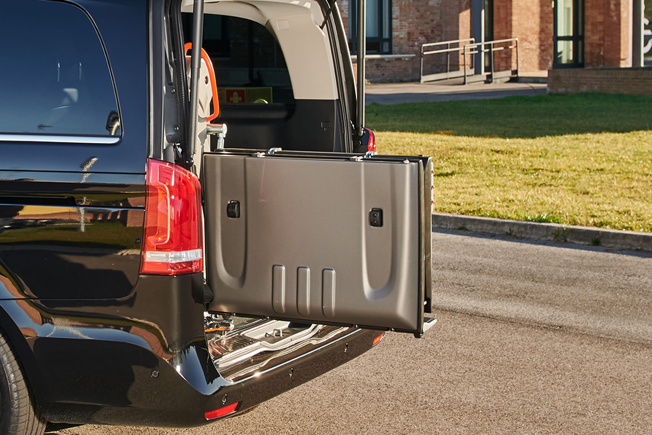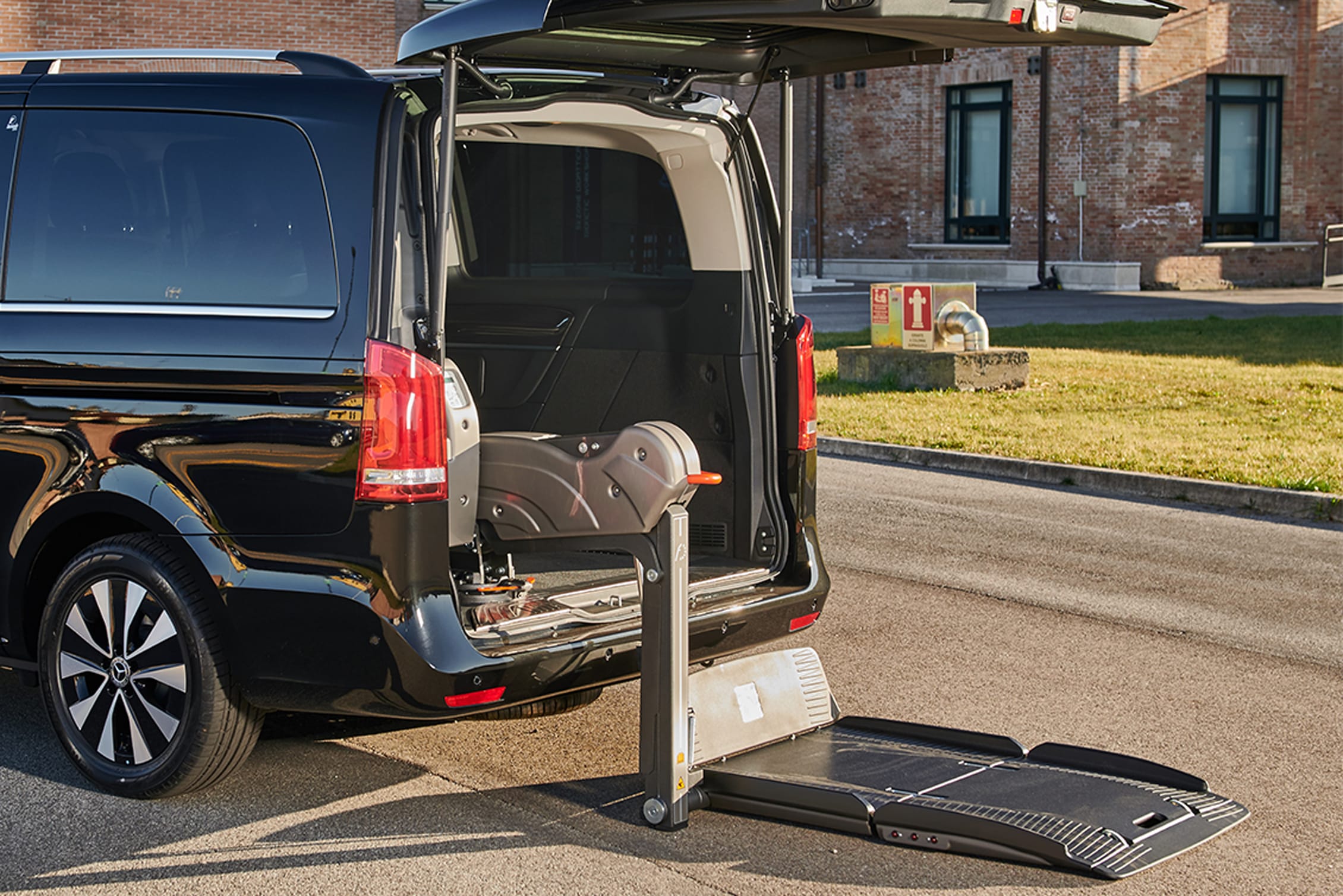 Mercedes Classe V con Sollevatore Fiorella si distingue per eleganza e versatilità. L’ampio vano passeggeri, combinato con l’integrazione del sollevatore, consente un accesso comodo e sicuro per la persona in carrozzina. Ideale per il trasporto di passeggeri con mobilità ridotta in tutte le circostanze.