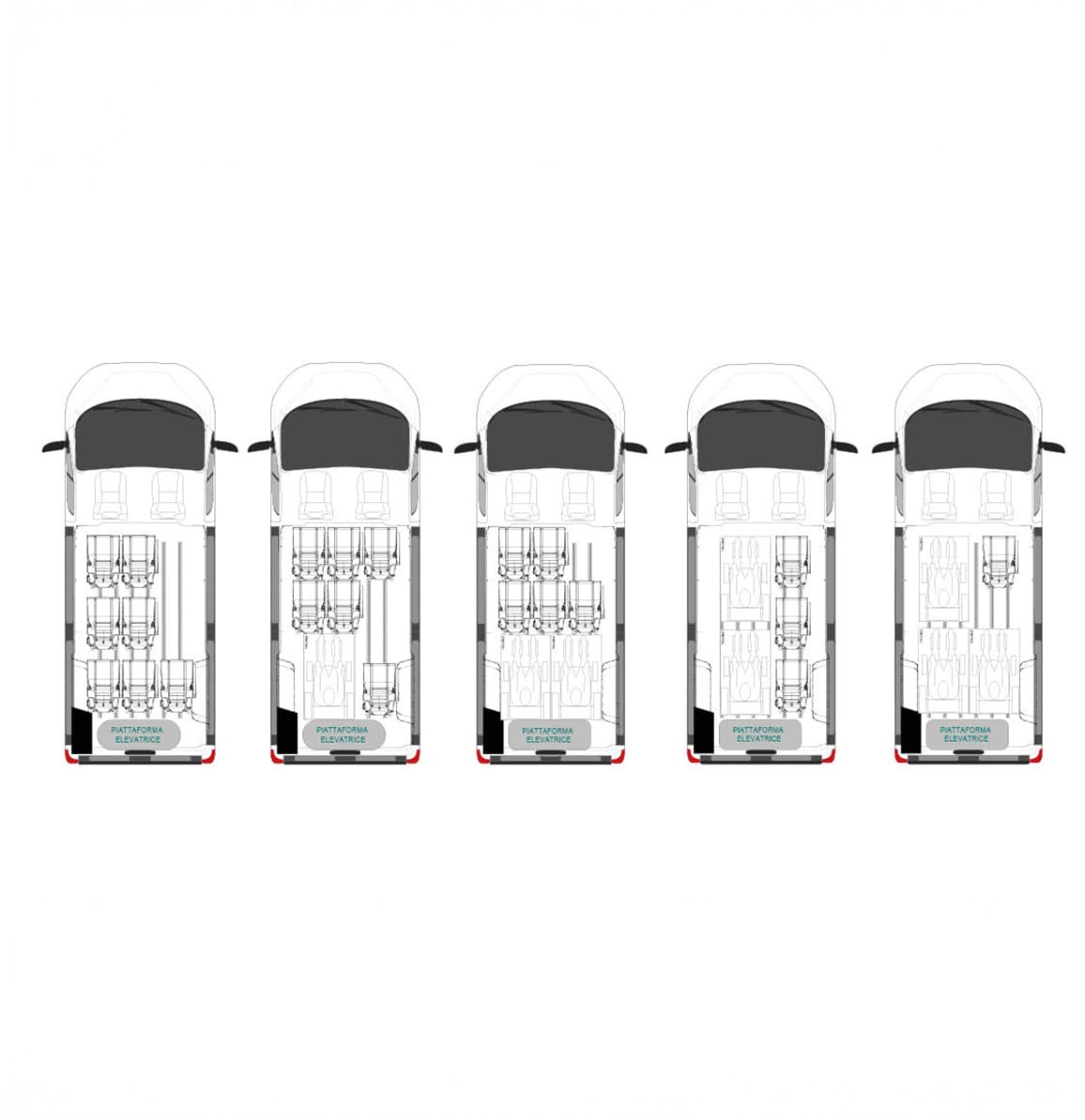 Configurazioni: 3+3 / 5+2 / 7+2 / 8+1 / 9 posti totali