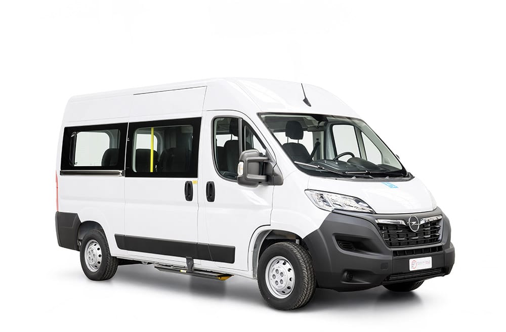 Opel Movano in versione Minibus è ideale per enti pubblici, associazioni e servizi di trasporto professionale. Offre fino a 9 posti totali, interni modulari e omologazione M1. È disponibile nelle versioni Passo Medio o Passo Lungo con tetto alto, con alimentazione Diesel o anche in variante Elettrica per una mobilità sostenibile.