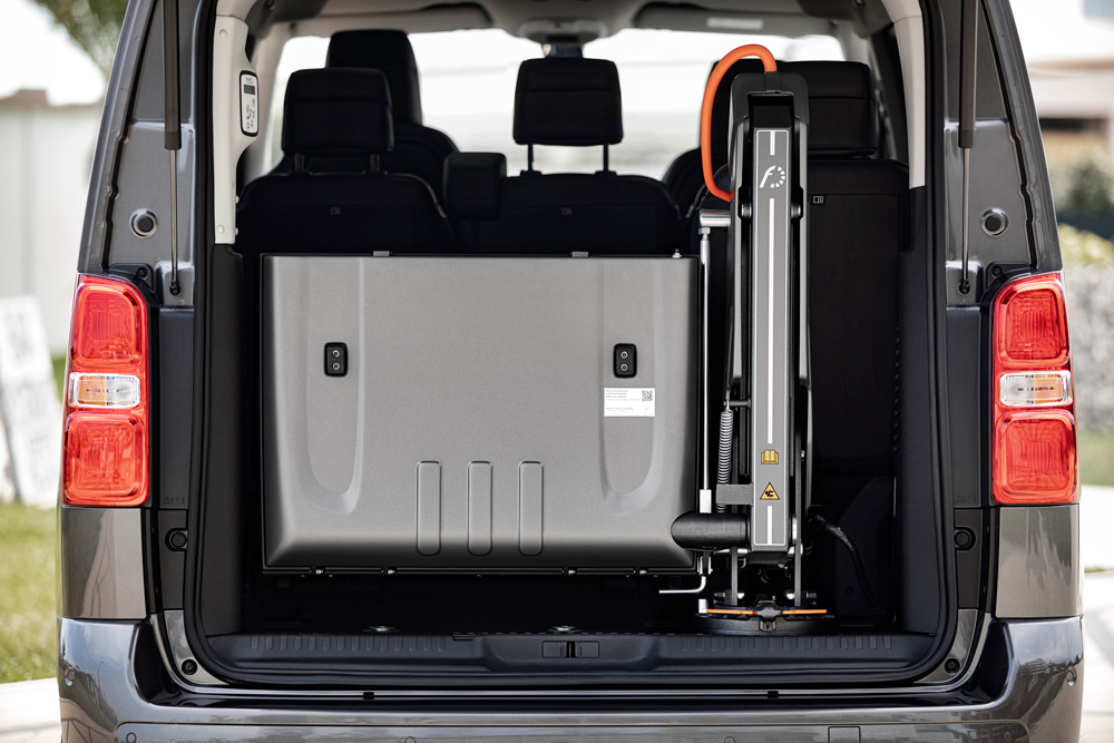 The Toyota Proace Verso conversion with the Fiorella lift ensures full and uncompromising accessibility. The lift is discreetly integrated, making the vehicle suitable for transporting passengers with reduced mobility.