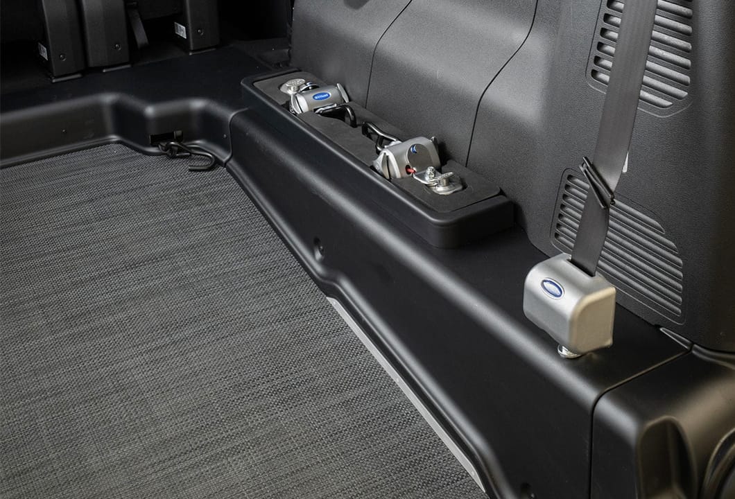L’allestimento F-Style, progettato e prodotto in Italia, è molto riconoscibile: pavimentazione Hi-Tech, luci LED integrate, rivestimenti interni in ABS automotive, nuovi sedili singoli rivestiti in tessuto abbinati agli interni della vettura.