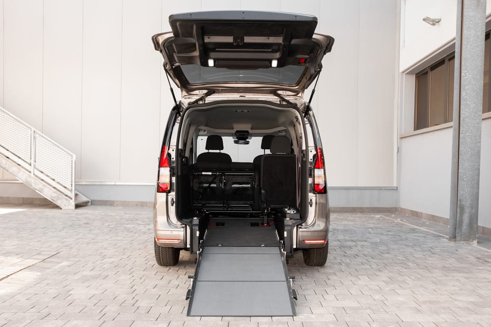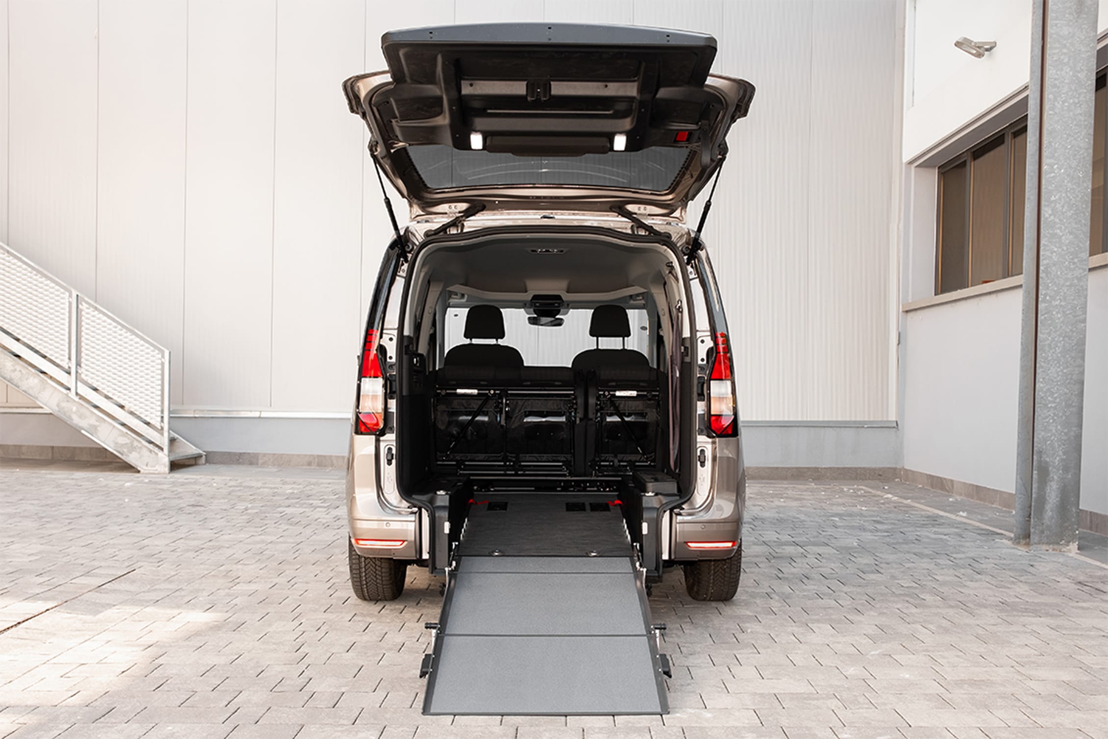 Volkswagen Caddy con pianale ribassato e rampa d’accesso consente il trasporto di una persona con disabilità in carrozzina e fino a tre passeggeri, a seconda della configurazione. L’allestimento F-Style offre equipaggiamenti funzionali come il pianale ribassato e la Genius Ramp, la pratica rampa d’accesso manuale ancora più leggera e maneggevole.