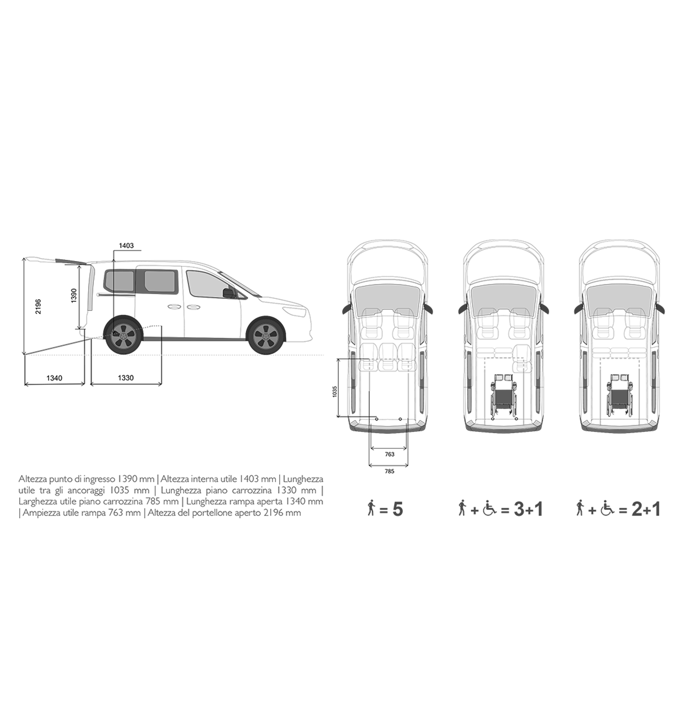 Apertura e chiusura manuale della rampa di accesso sono facili e veloci. Quando la persona in carrozzina non è a bordo, la rampa si ripiega internamente per ricreare il piano di appoggio originario, utile per il posizionamento di oggetti o bagagli.