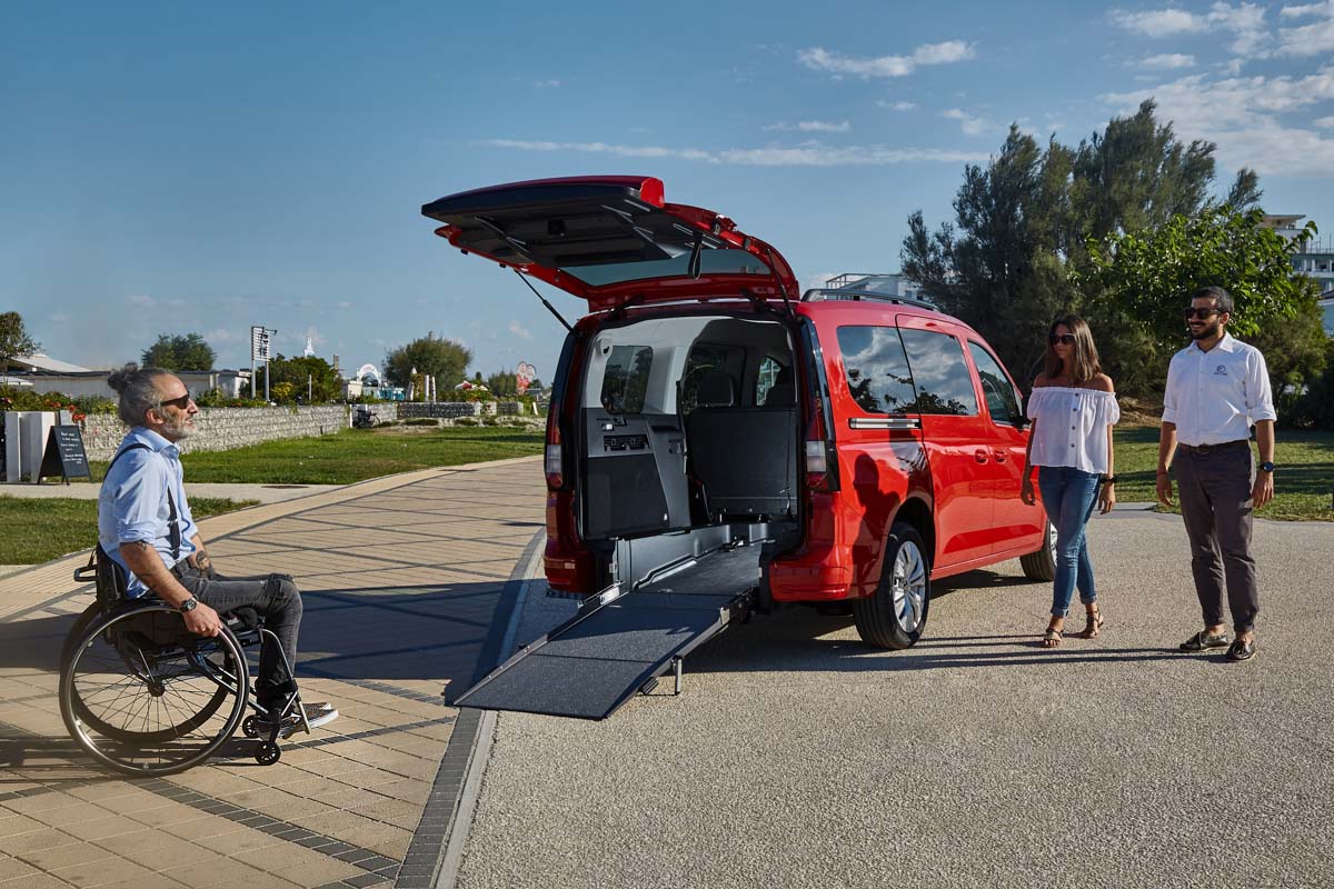 Unsere Fahrzeuge sind einfach in der Verwendung und bieten ein angenehmes Fahrerlebnis: sie erleichtern das tägliche Pendeln, ohne dabei auf Stil und Design zu verzichten. Die behinderte Person steigt dank der integrierten Rollstuhlrampe, die sich mit einer einfachen Bewegung öffnet und schließt, sicher in das Fahrzeug ein und reist in ihrem Rollstuhl neben den anderen Fahrgästen.